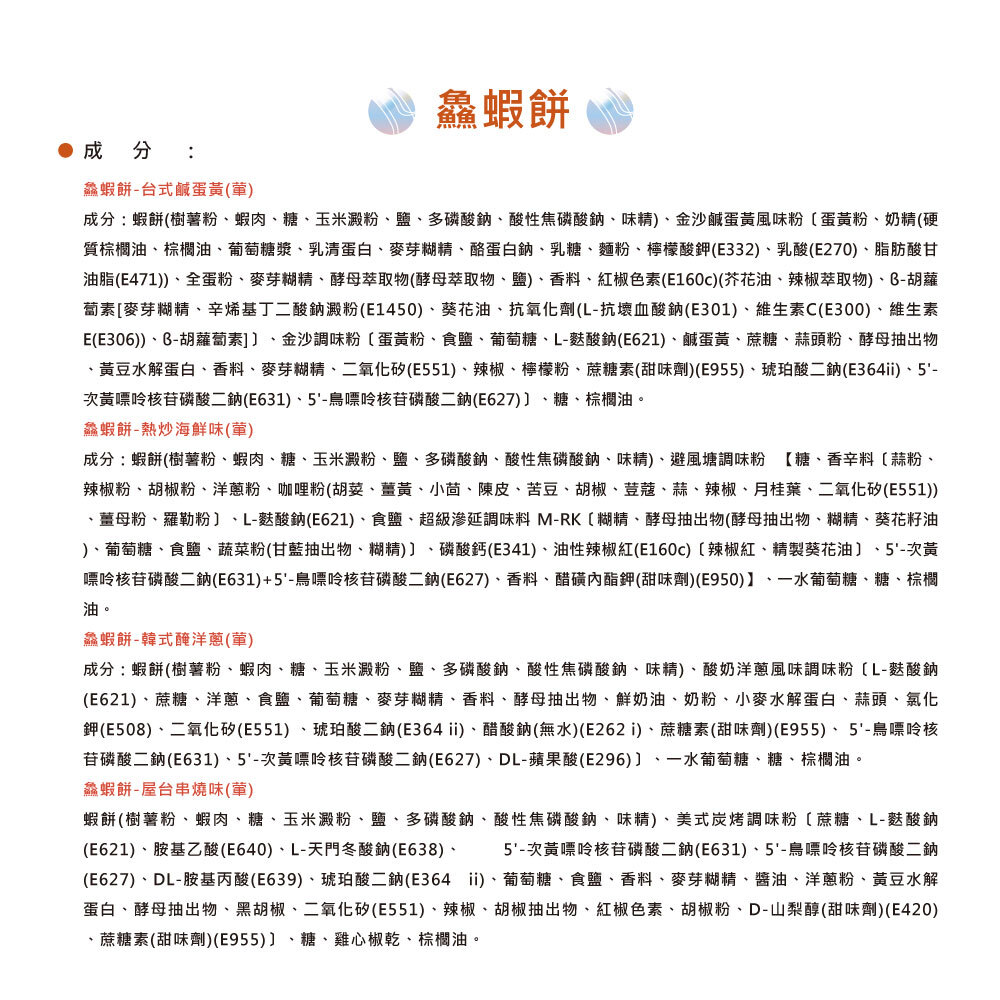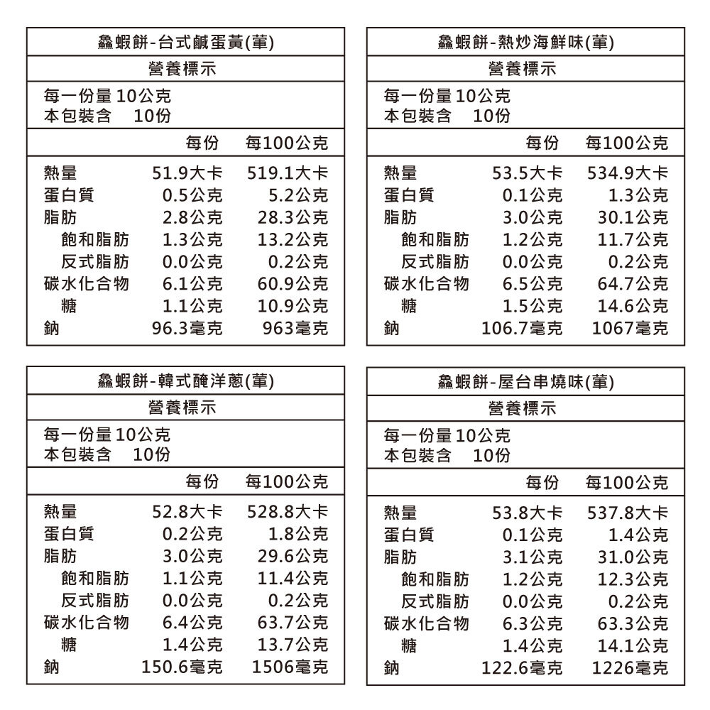 台式鹹蛋黃、熱炒海鮮味、韓式醃洋蔥、屋台串燒味