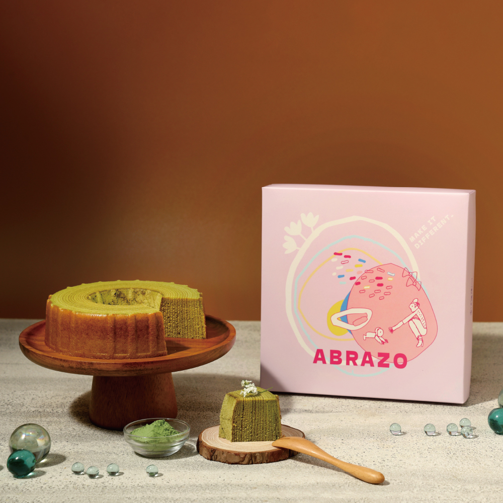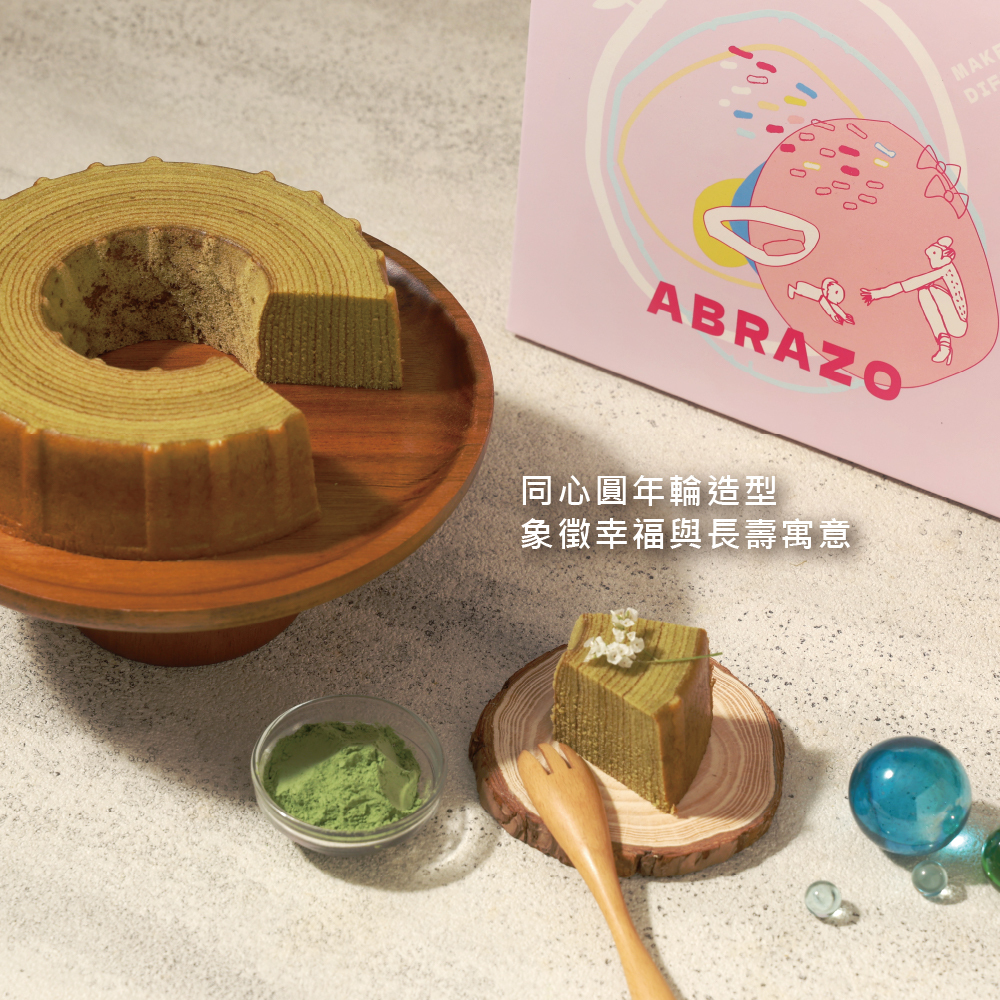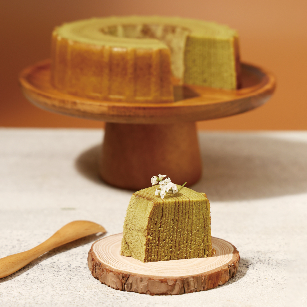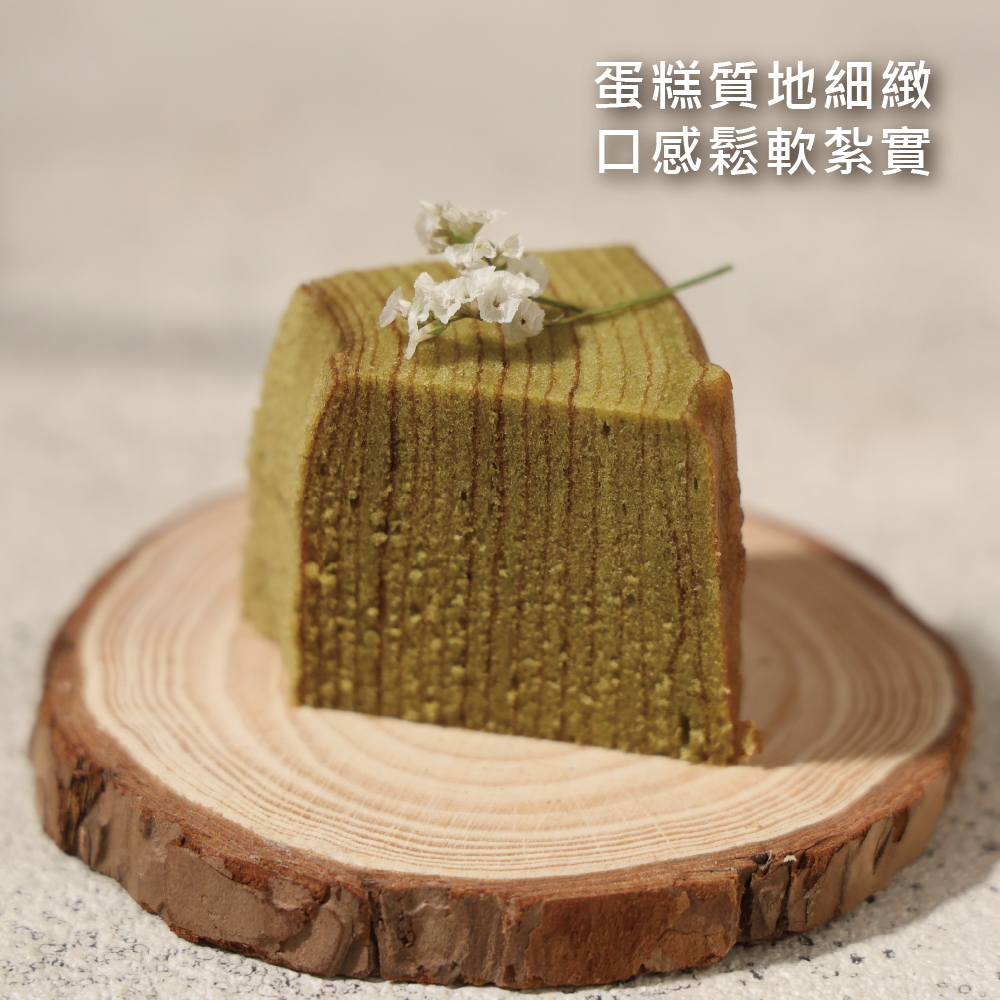 象徵幸福與長壽疊加的年輪蛋糕,抹茶風味濃郁、蛋糕質地細緻,鬆軟且紮實的口感。