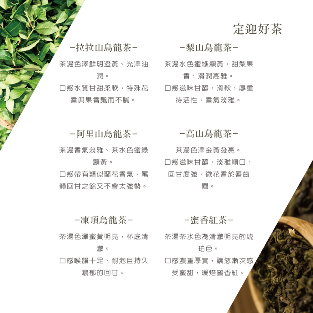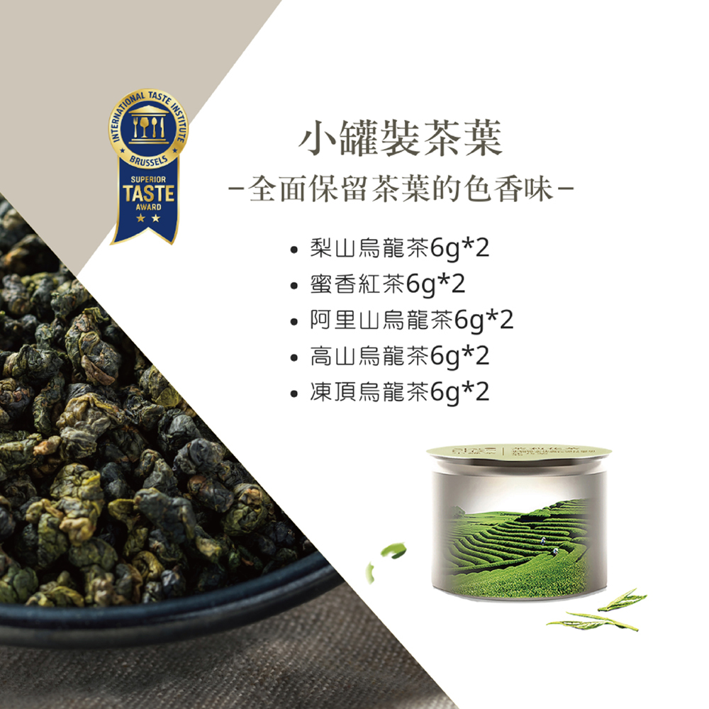 規格:梨山6gx2罐、紅茶6gx2罐、阿里山6gx2罐、高山6gx2罐、凍頂gx2罐