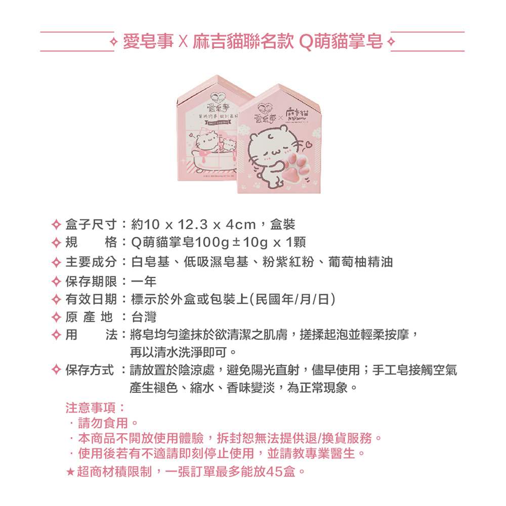 以貓掌圓潤肉球為造型的可愛手工皂,質地溫和、泡沫細緻,洗手也能療癒一整天。送禮、自用都超可愛!
