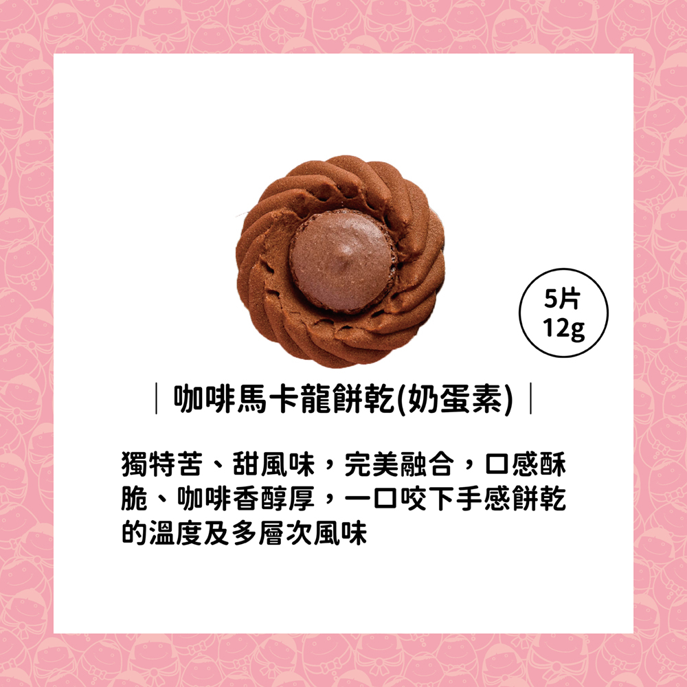 規格:咖啡馬卡龍X5片、燕麥餅乾X5片、阿唐環保襪X1盒(內有3隻、隨機出貨)