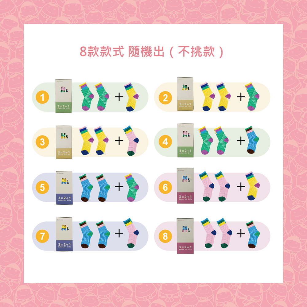 每個禮盒有三隻襪子,兩隻同色,另一隻不同色。你可以選擇一如往常的低調,也可以撞出與眾不同的色彩。