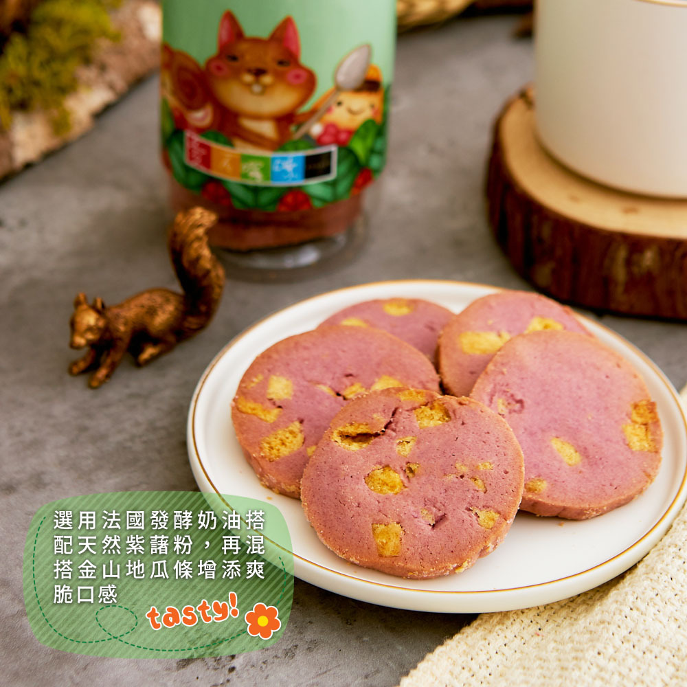 選用法國發酵奶油搭配天然紫藷粉,呈現誘人的紫紅色澤與奶香風味,再混搭金山地瓜條增添爽脆口感,完美融合的多層次滋味讓您回味無窮