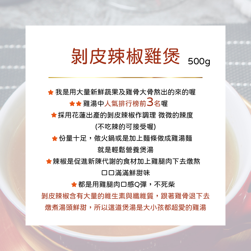 .雞肉與剝皮辣椒同煮,雞肉緊實、雞湯甘美