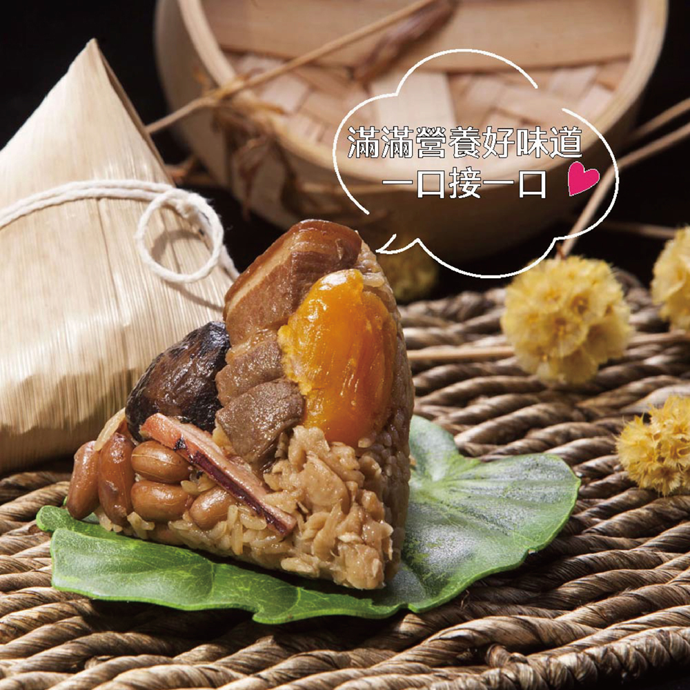 黏Q糯米搭配手工焙炒滷肉,融合香菇、蝦米與蛋黃等豐富配料,經蒸煮後釋放粽葉清香,層層堆疊出濃郁經典風味