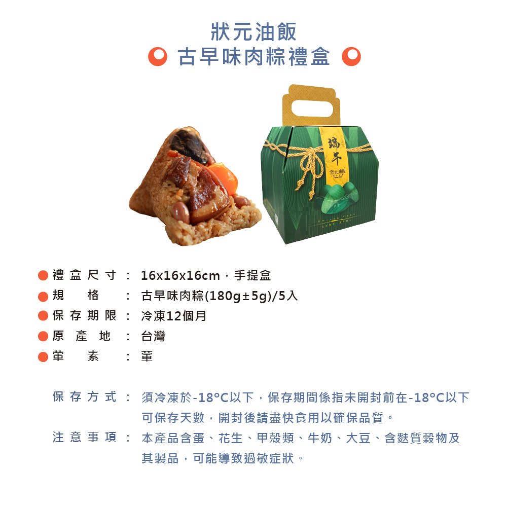 規格 2:古早味肉粽(180g±5g) / 5入 X 8盒 ,共40顆