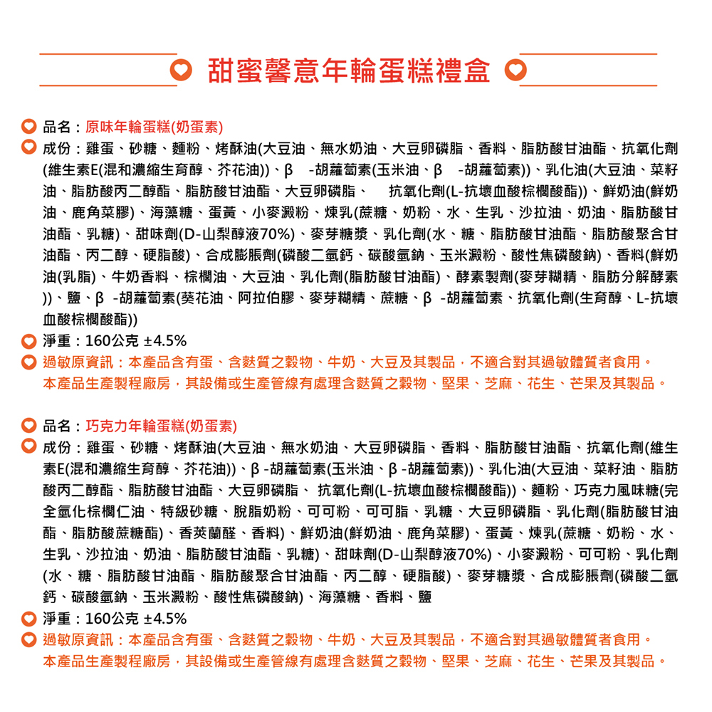 規格:原味年輪蛋糕 160g*1、巧克力年輪蛋糕 160g*1