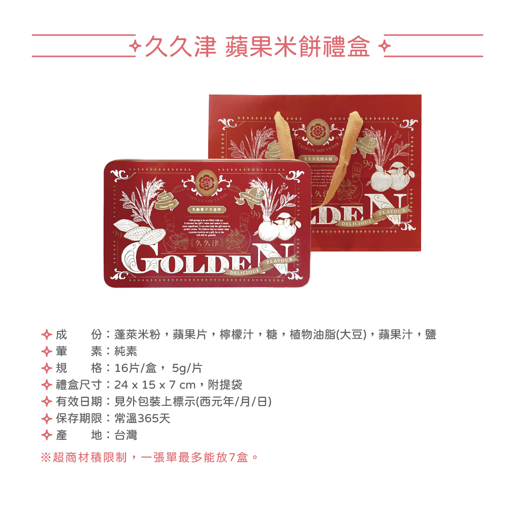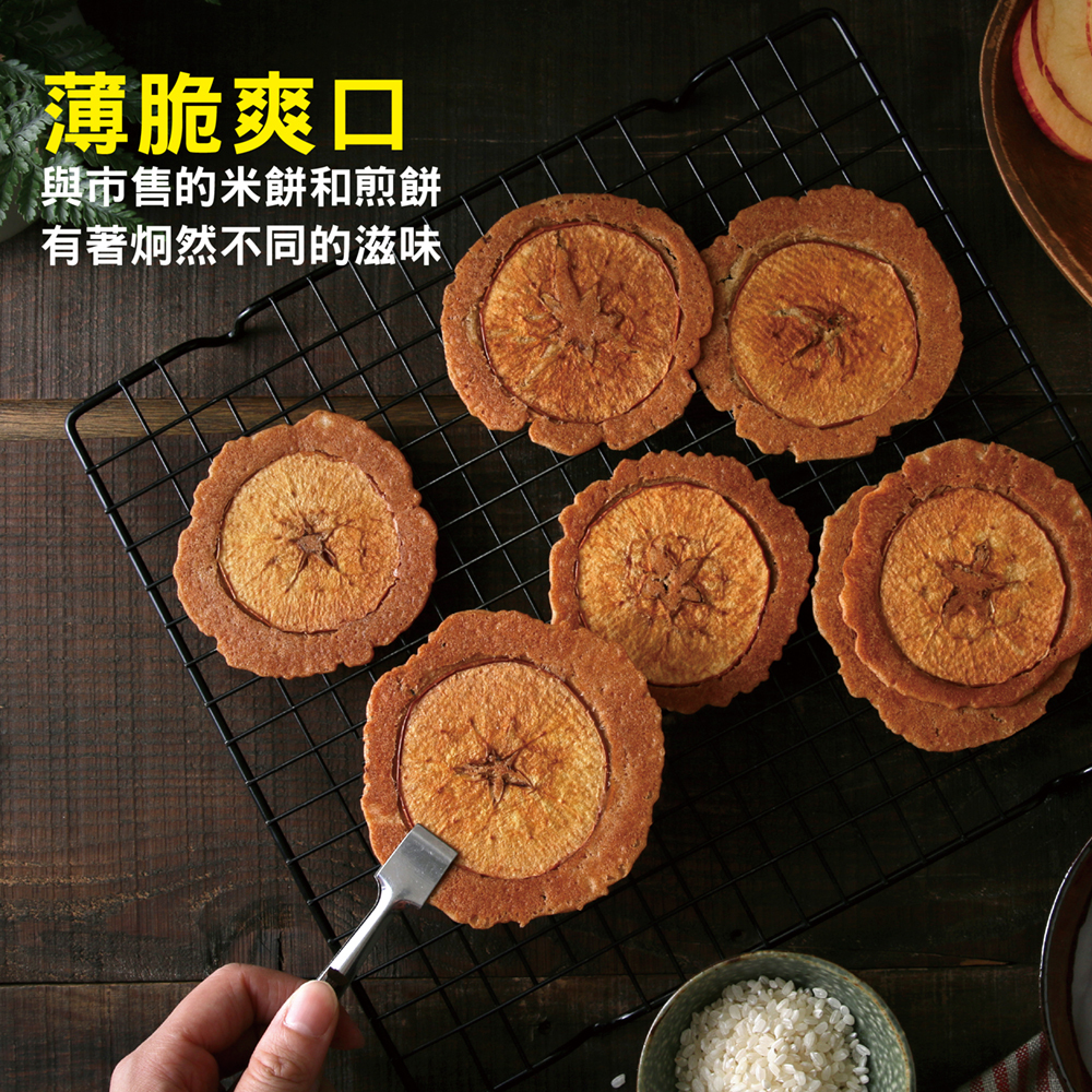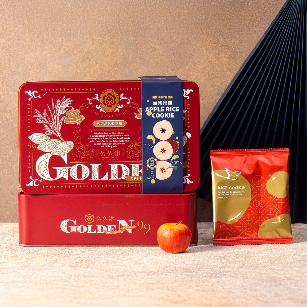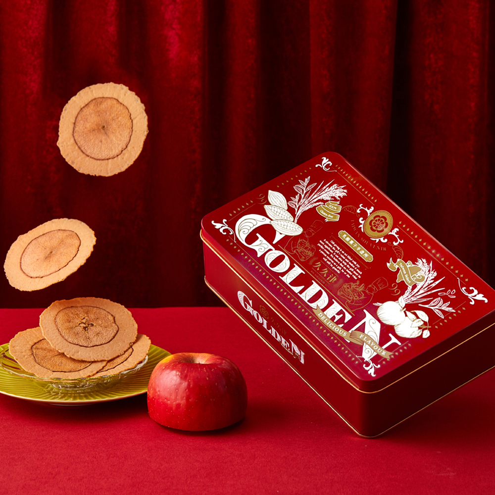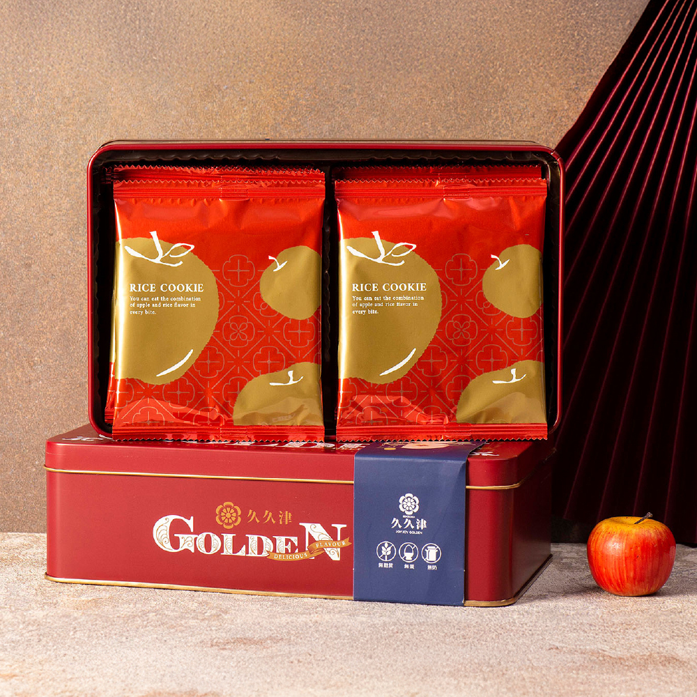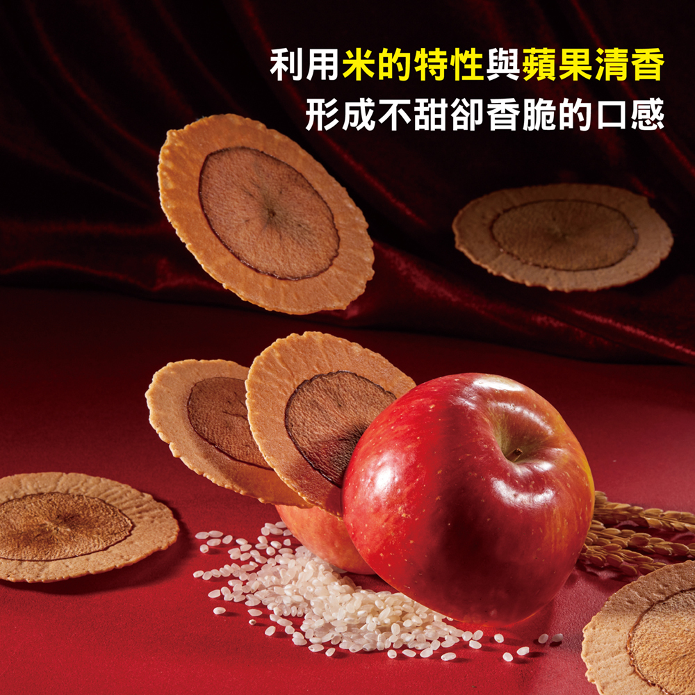 蘋果米餅 X 無麩質 X 無添加100%蘋果原汁+100%水磨米製作、用純粹的酸甜滋味;高質感鐵盒包裝,心意滿分。