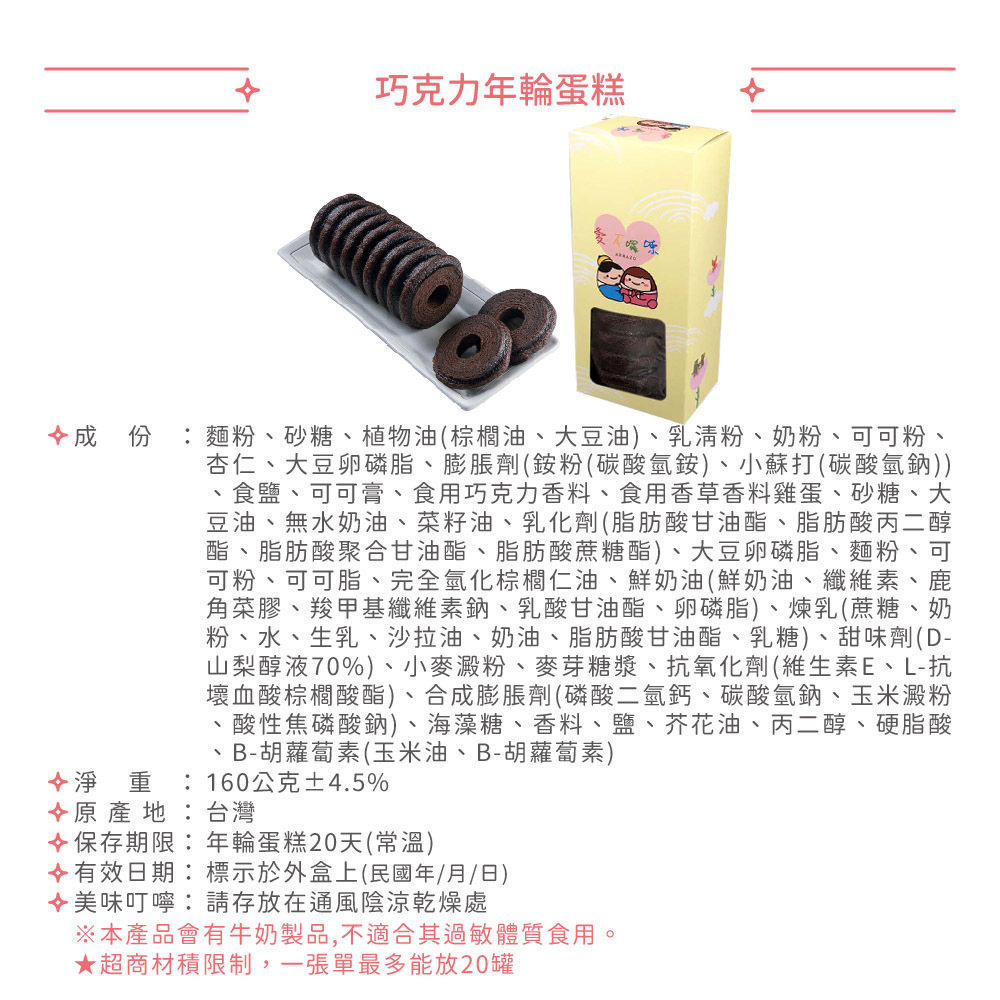 內容物:巧克力年輪蛋糕 160g*1條,附紙袋