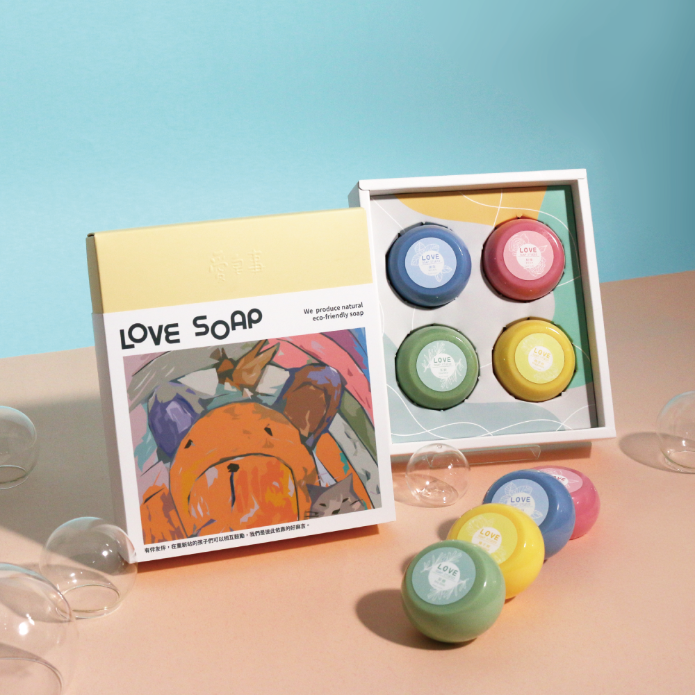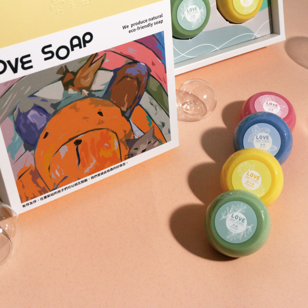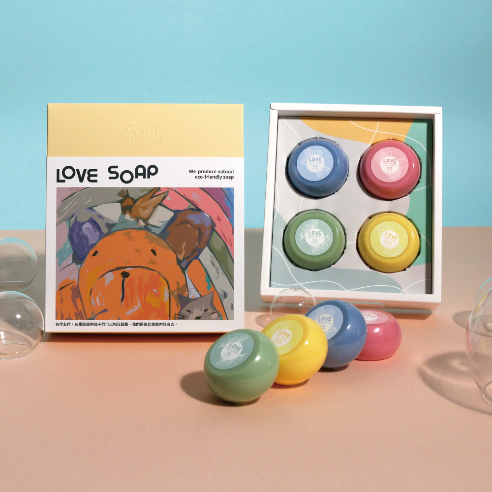 生活偶爾會有風雨,但還好有你在身邊;四顆圓滿的小皂,聚在一起就是最完整的力量。