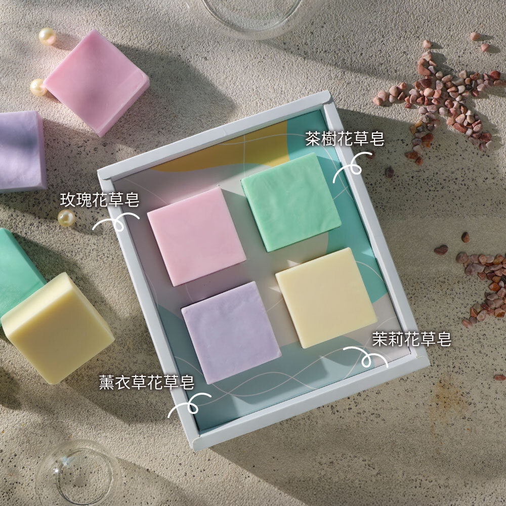 規格:花草精油皂(120g) 玫瑰x1、茉莉x1、茶樹x1、薰衣草x1